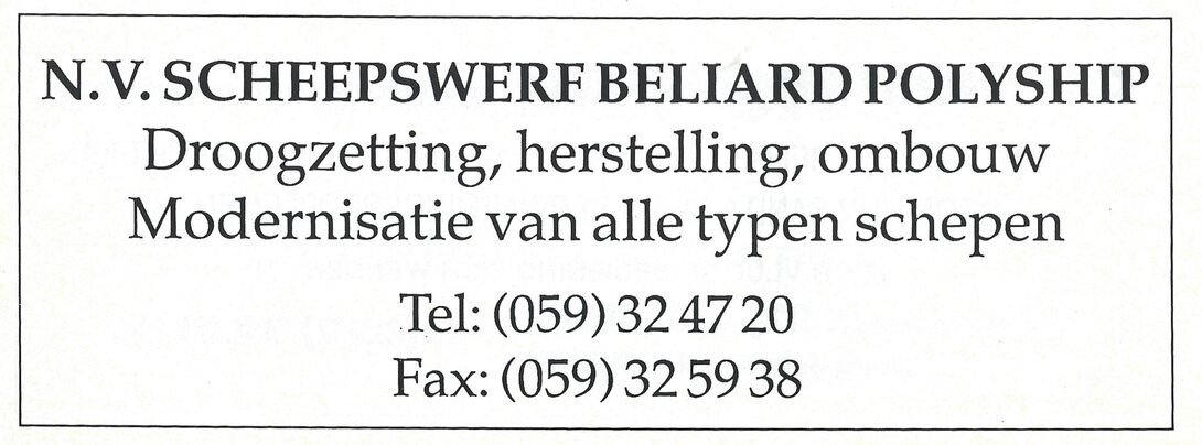 Trefwoorden NIJVERHEID ; SCHEEPSBOUW BELIARD POLYSHIP (SCHEEPSWERF) ADVERTENTIES ; HAVENBEDRIJVEN ADVERTENTIES ; SCHEEPSBOUW Plaatskenmerk VISS1991 01-01-1991 Auteurs Anoniem Bron Het Visserijblad Pagina's 32 Print