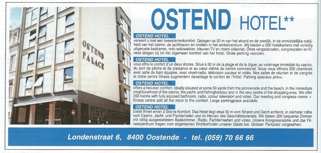 Trefwoorden ADVERTENTIES ; HORECA OSTEND HOTEL LONDENSTRAAT Plaatskenmerk A339 Deelbeschrijving uit boek of document Oostende 89 1988 Pagina 58 Print