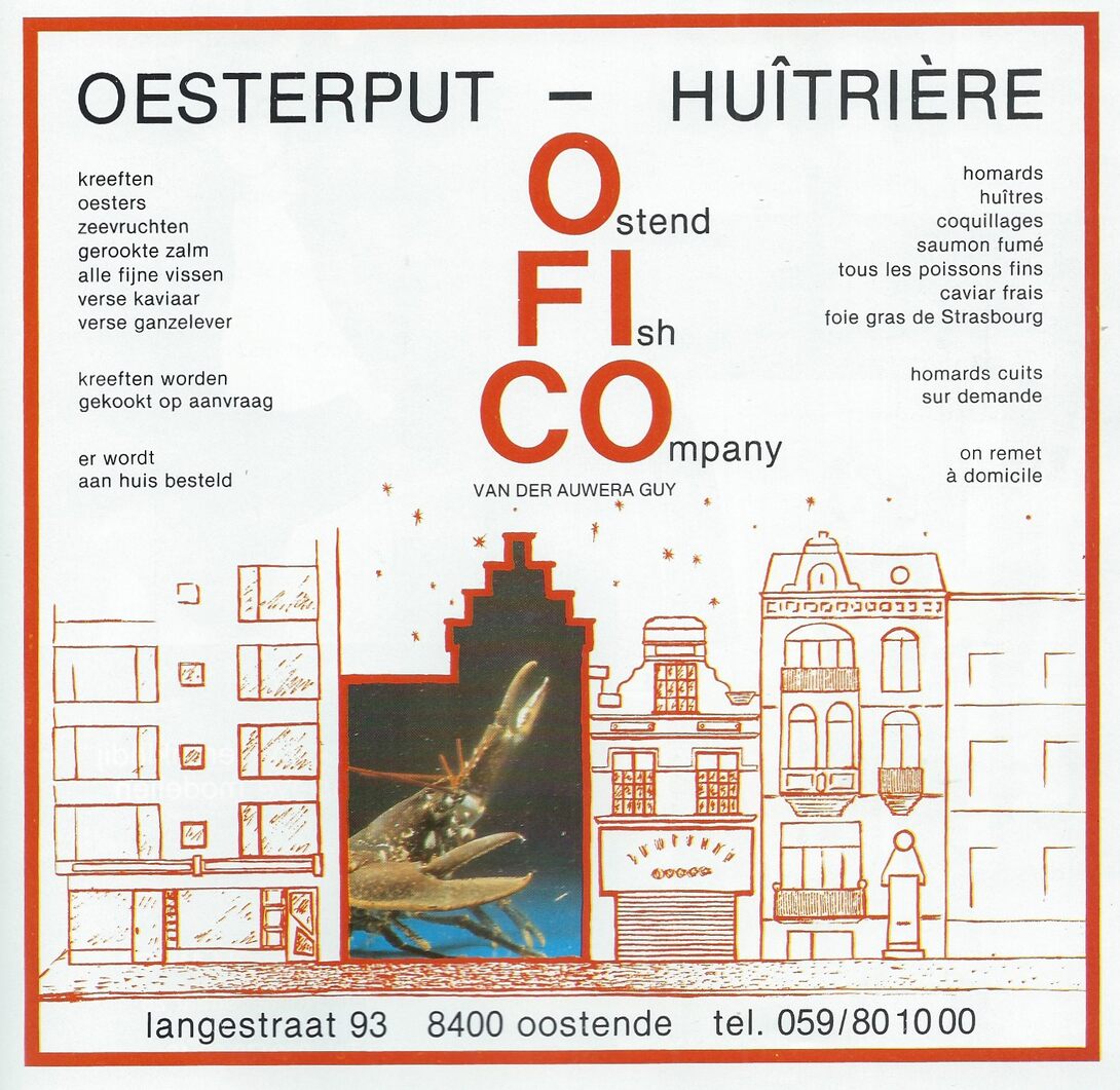 Advertentie : Ostende Fish Company (OFICO). Oesterput - Huîtrière. Langestraat 93, Oostende