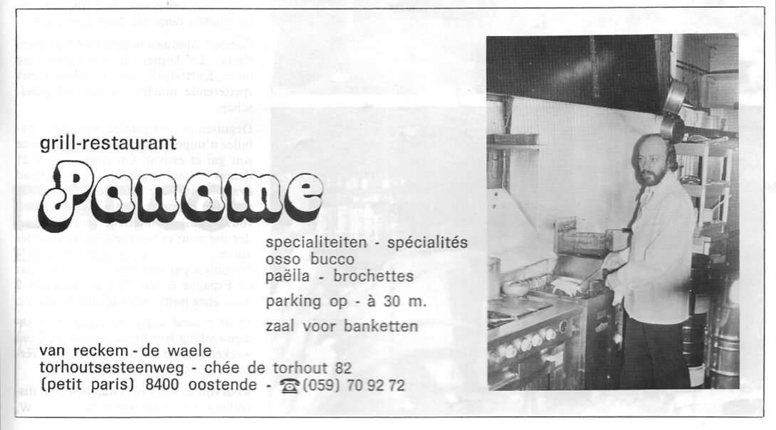 Omschrijving Van Reckem-De Waele Trefwoorden ADVERTENTIES ; HORECA PANAME (RESTAURANT BISTRO TEAROOM) VAN RECKEM-DE WAELE (RESTAURANTHOUDER) TORHOUTSESTEENWEG juli augustus 1984 Volume 2 Nummer 4 Bron Noordzee magazine Pagina's 45 Print
