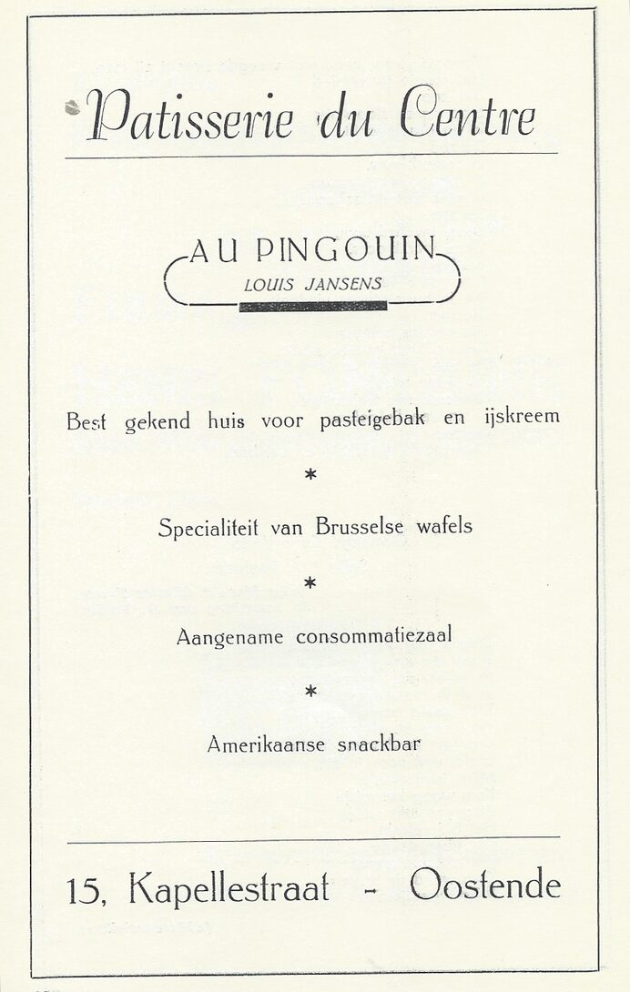 Advertentie : Patisserie du Centre. Au Pingouin. Kapellestraat 15, Oostende