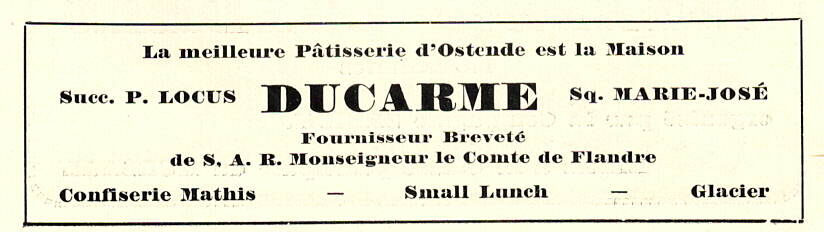 Succ. P. Locus. Fournisseur breveté de S.A.R. Monseigneur le Comte de Flandre. Confiserie Mathis. Small lunch. Glacier.