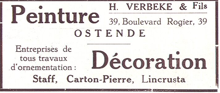 Advertentie : Peinture Décoration. H. Verbeke & Fils. Rogierlaan 39, Oostende
