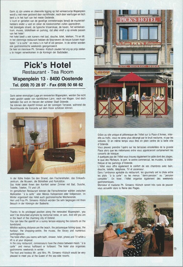 Advertentie : Pick's Hotel. Wapenplein 13, Oostende
