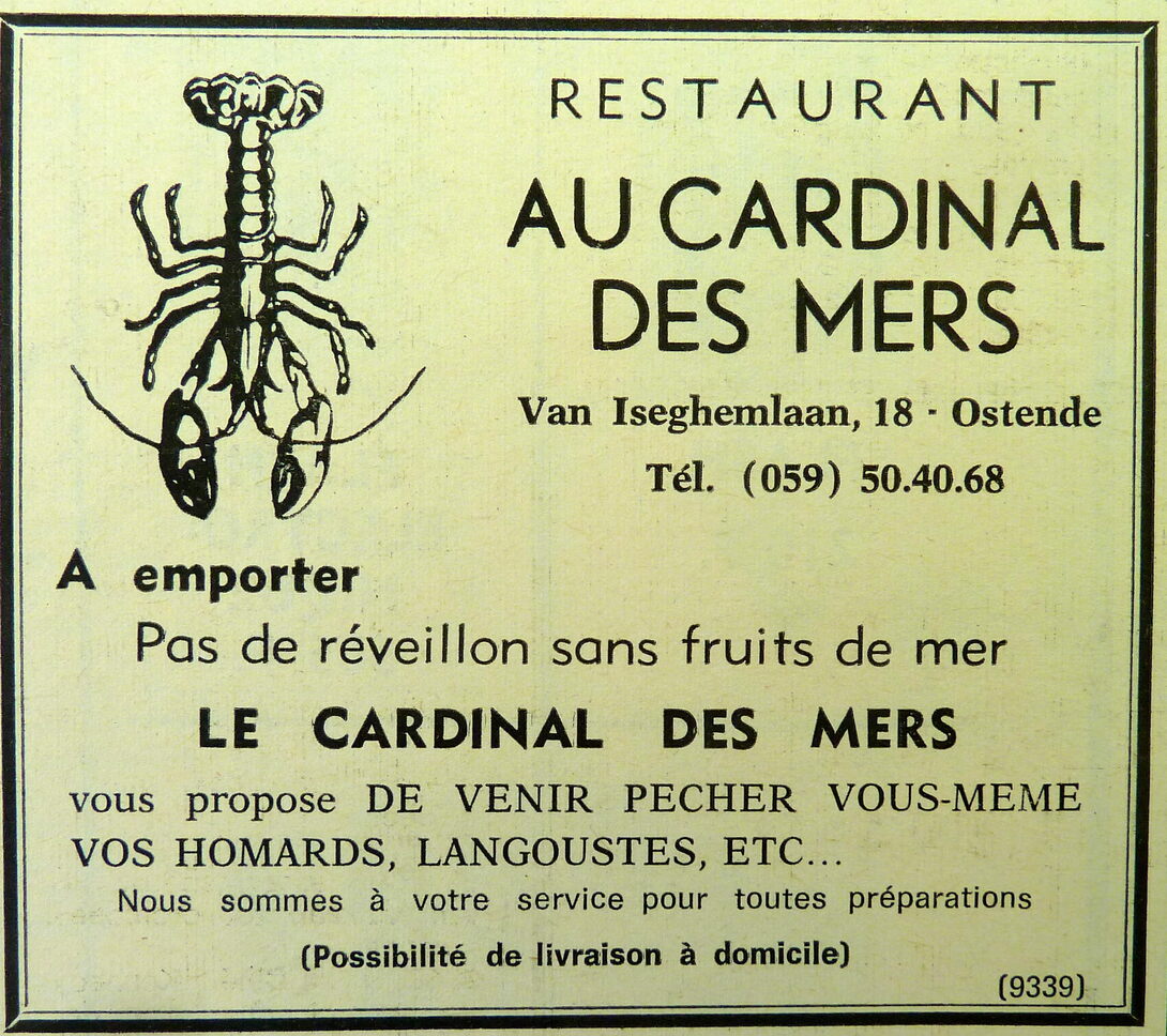 Advertentie : Restaurant Au Cardinal des Mers. Van Iseghemlaan 18