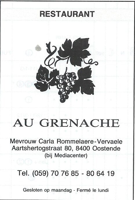 Advertentie : Restaurant Au Grenache. Aartshertogstraat 80, Oostende