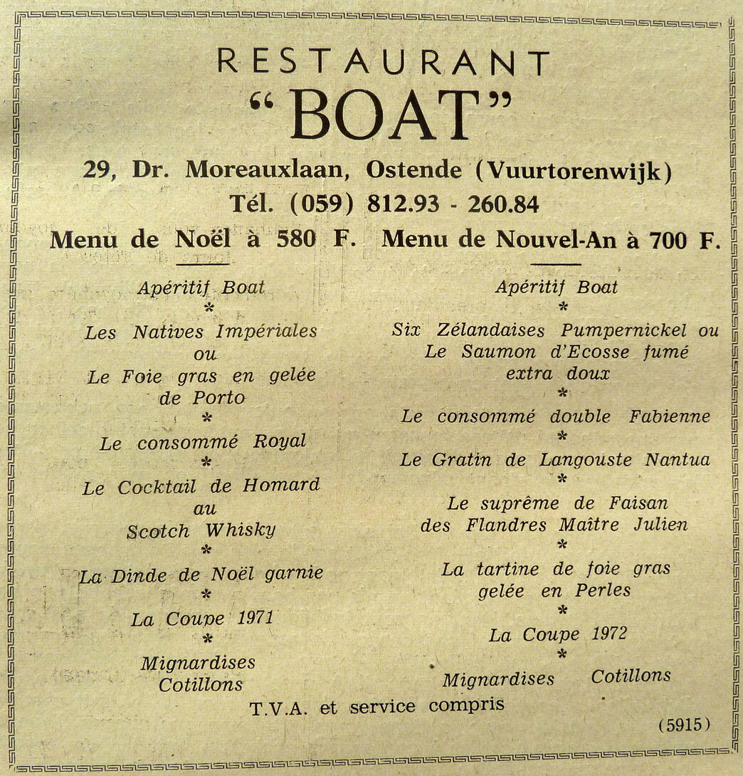 Advertentie : Restaurant "Boat". 29, Dr. Moreauxlaan, Ostende