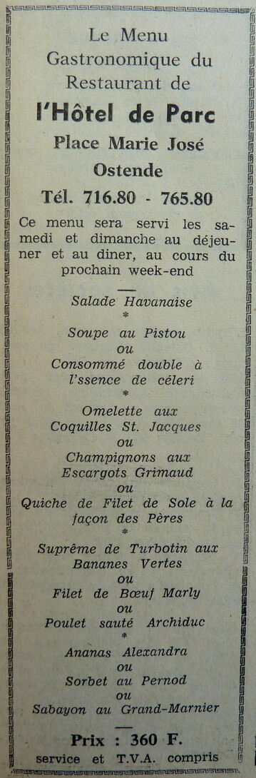 Advertentie : Restaurant de l'Hôtel de Parc. Place Marie José, Ostende