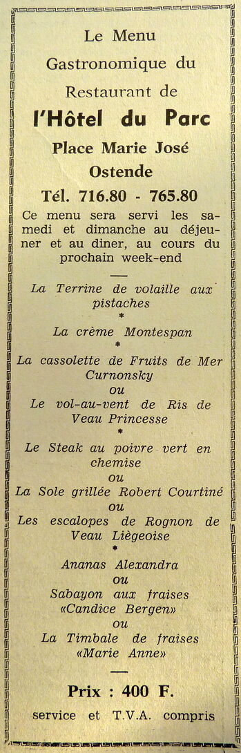 Trefwoorden ADVERTENTIES ; HORECA HOTEL DU PARC (HOTEL CAFE) MENU'S GASTRONOMIE Plaatskenmerk ARCHIEF 117.8 B35 COUR1971 30-04-1971 Auteurs Anoniem Bron Le Courrier du Littoral Pagina's 3 Print