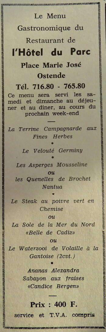 Trefwoorden ADVERTENTIES ; HORECA HOTEL DU PARC (HOTEL CAFE) MENU'S GASTRONOMIE Plaatskenmerk ARCHIEF 117.8 B35 COUR1971 14-05-1971 Auteurs Anoniem Bron Le Courrier du Littoral Pagina's 3 Print