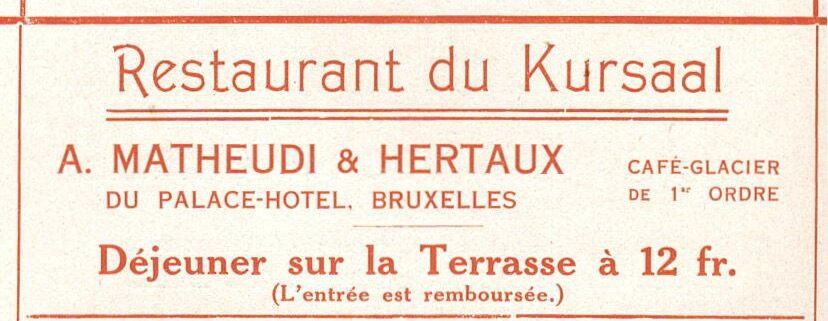 du Palace-Hotel, Bruxelles. Café-Glacier de 1er ordre. Déjeuner sur la Terrase à 12 fr. (L'entrée est remboursée). - Map 015 D-12