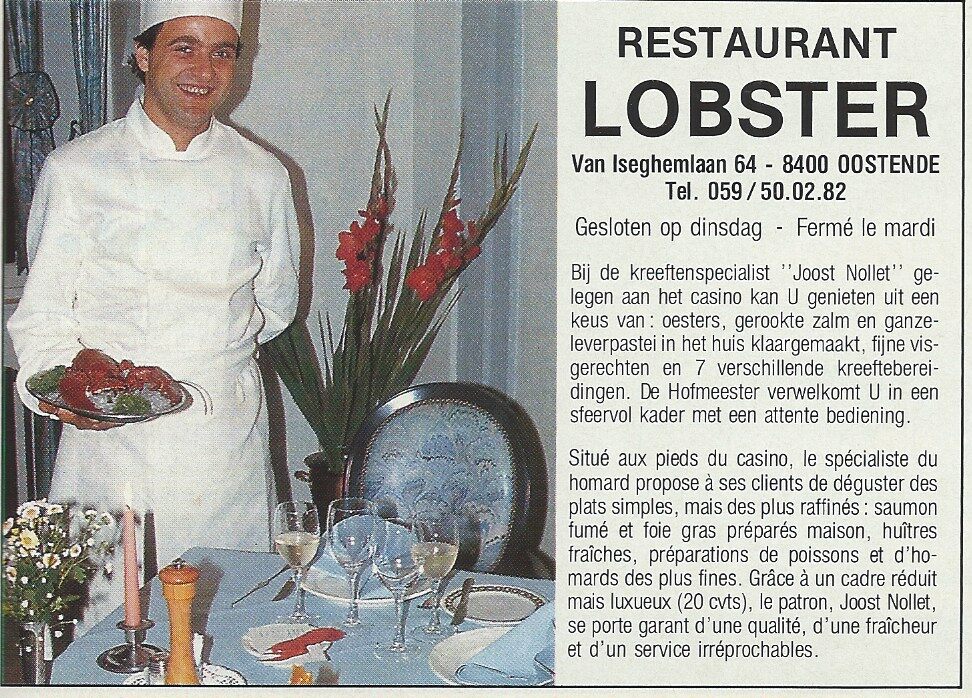 Trefwoorden ADVERTENTIES ; HORECA LOBSTER (RESTAURANT) VAN ISEGHEMLAAN NOLLET JOOST (RESTAURANTHOUDER) Plaatskenmerk C494 Deelbeschrijving uit boek of document Oostende [92] 1991 Pagina 57 Print
