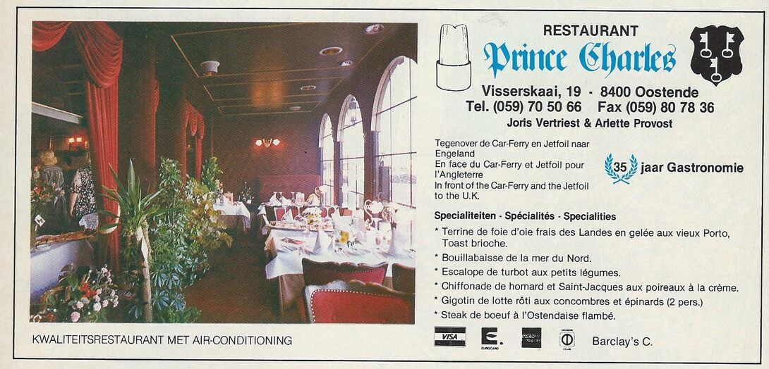 Advertentie : Restaurant Prince Charles. Visserskaai 19, Oostende