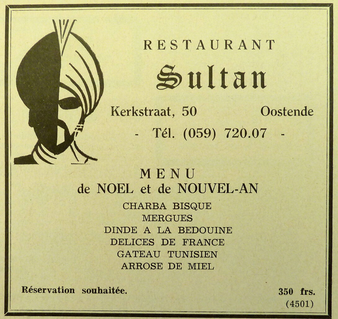 Advertentie : Restaurant Sultan. Kerkstraat 50, Oostende