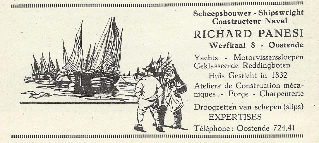 Scheepsbouwer. Shipswright. Constructeur Naval. Yachts - Motorvisserssloepen - geklasseerde reddingboten - Huis gesticht in 1832. Ateliers de construction mécaniques. Forge. Charpenterie. Droogzetten van schepen (slips). Expertises.