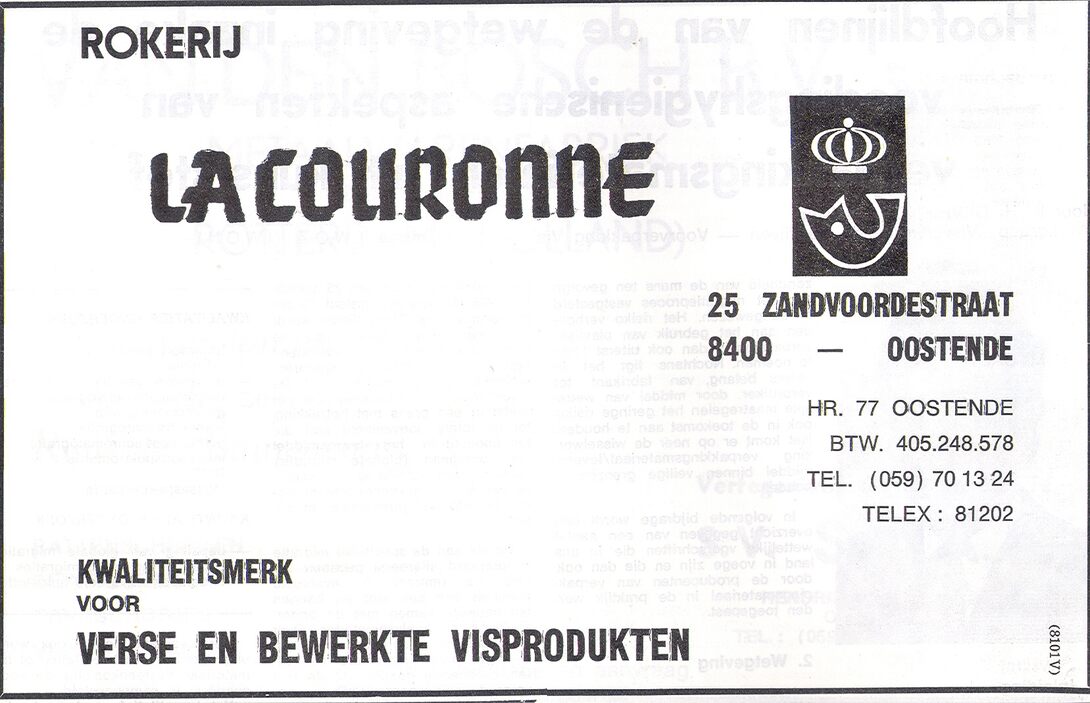 Trefwoorden LA COURONNE (VISROKERIJ) ADVERTENTIES ; VISINDUSTRIE NIJVERHEID ; VISROKERIJEN ZANDVOORDESTRAAT Plaatskenmerk VISS1977 30-12-1977 Auteurs Anoniem Bron Het Visserijblad Pagina's 50 Print