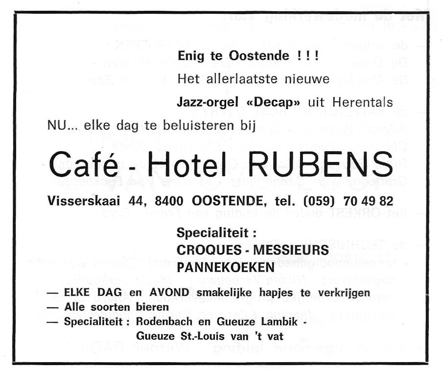 Jazz-orgel "Decap" uit Herentals. Specialiteit : croques-messieurs, pannekoeken