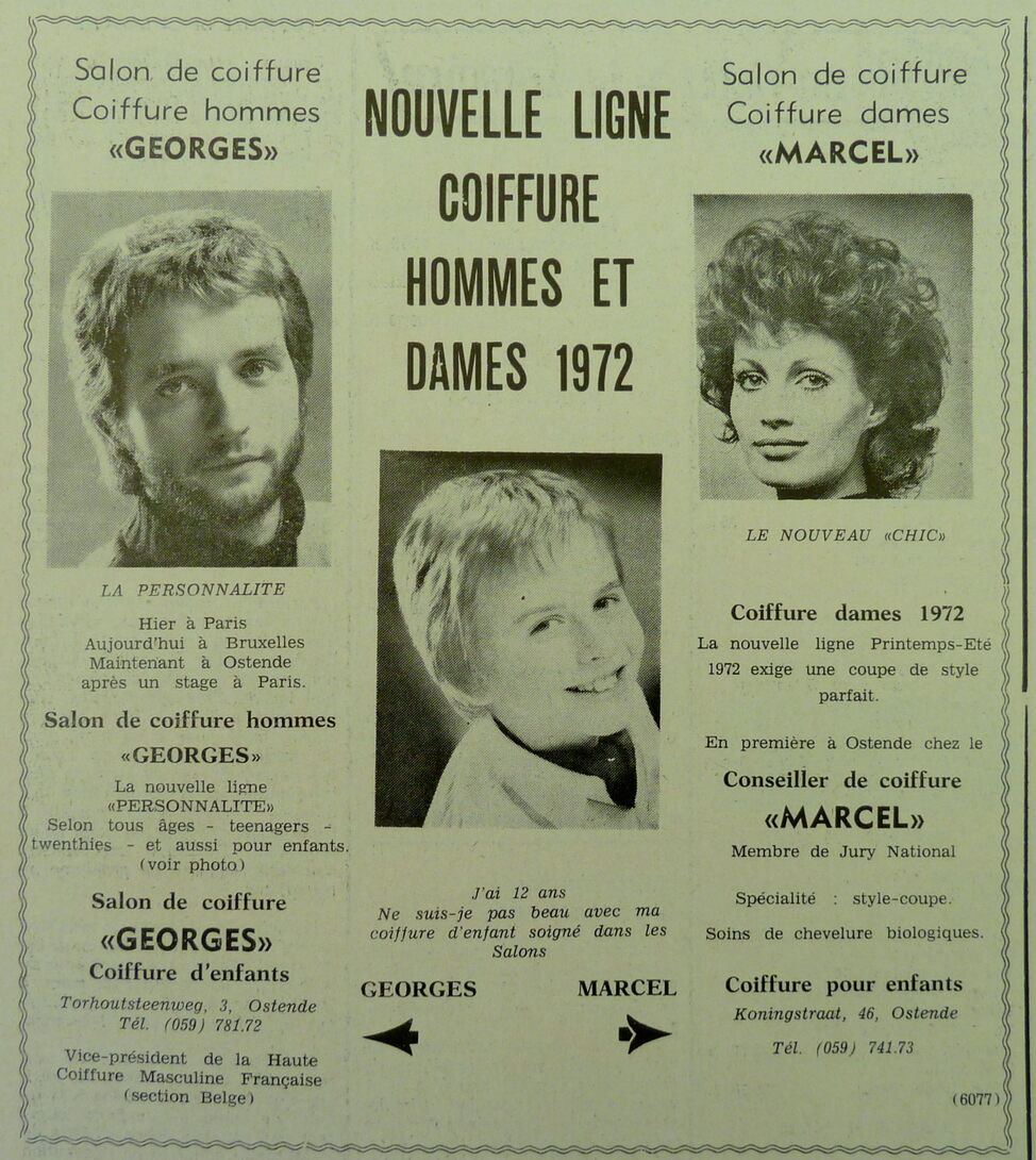 Advertentie : Salon de Coiffure "Georges". Torhoutsesteenweg 3. Salon de Coiffure "Marcel". Koningsstraat 46
