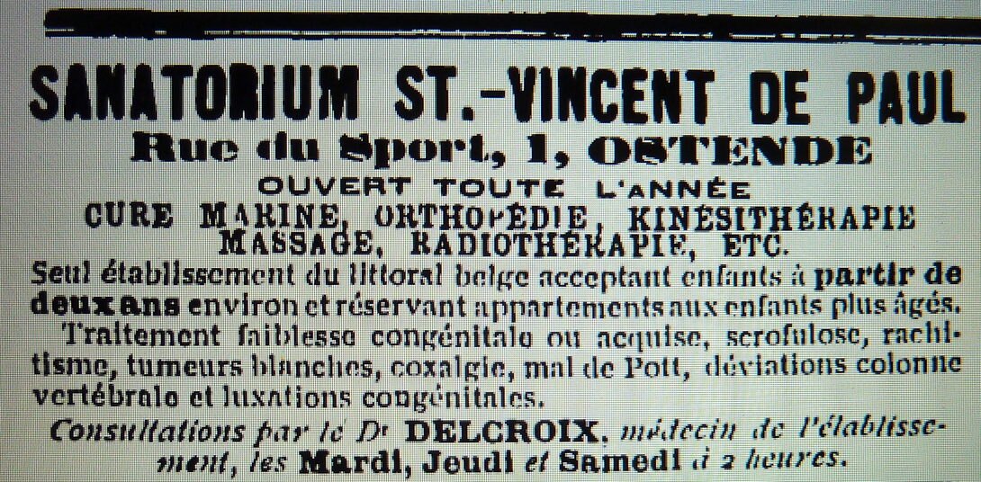 Advertentie : Sanatorium Maritime Saint-Vincent de Paul. Sportstraat 1