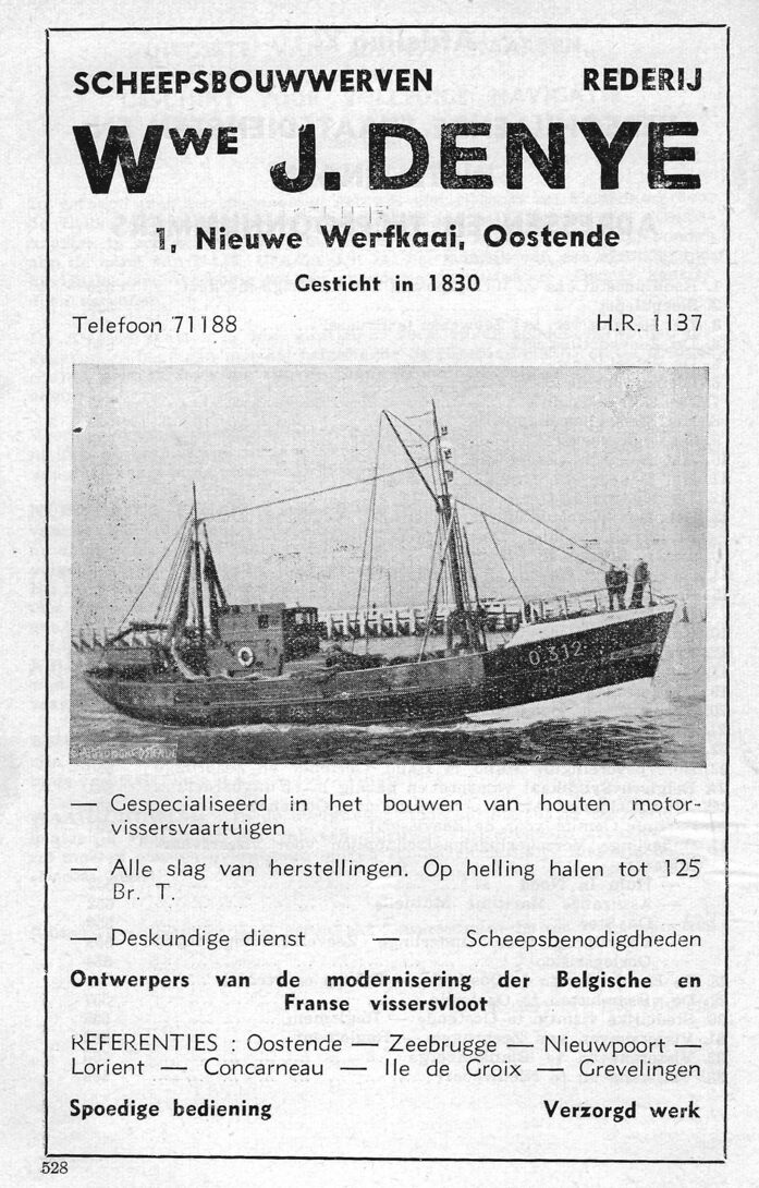 Advertentie : Scheepsbouwwerven - Rederij Wwe J. Denye. 1, Nieuwe Werfkaai, Oostende