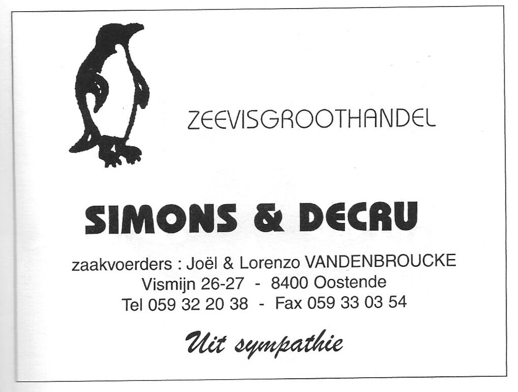 Advertentie : Simons & Decru. Zeevisgroothandel. Vismijn 26-27, Oostende