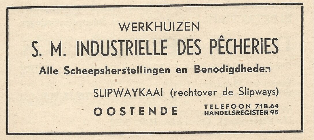 Advertentie : S.M. Industrielle des Pêcheries. Slipwaykaai Oostende