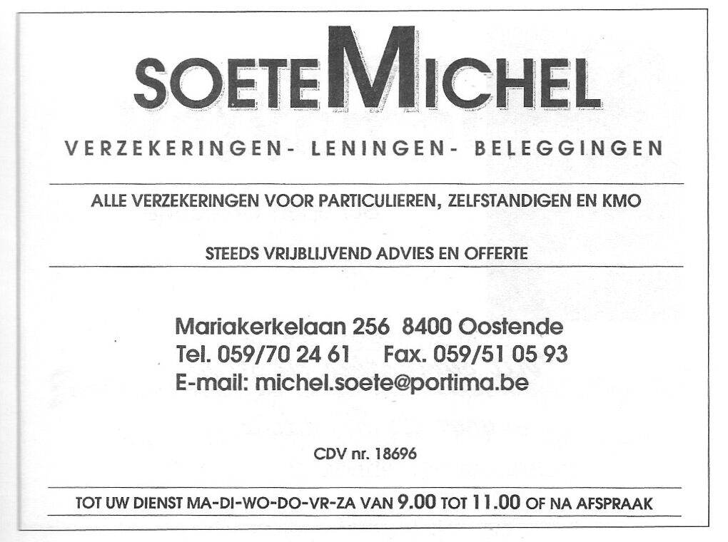 Trefwoorden ADVERTENTIES ; HANDEL SOETE MICHEL (VERZEKERINGEN LENINGEN BELEGGINGEN) MARIAKERKELAAN Plaatskenmerk MUSEUMDEPOT 117.7 A14 D2 Deelbeschrijving uit boek of document Programma : Mo gow zeg 2006 Pagina 57 Print