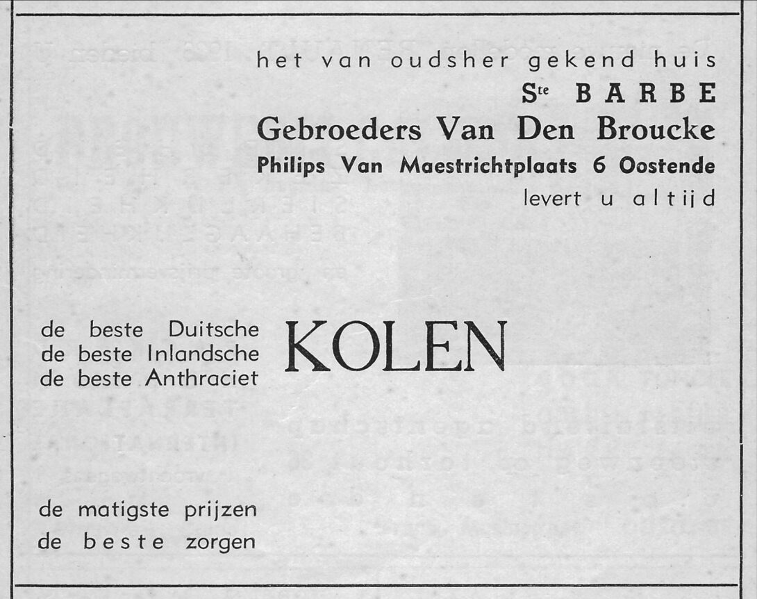 Advertentie : Ste Barbé. Gebroeders Van den Broucke. Kolen. Philips Van Maestrichtplaats 6