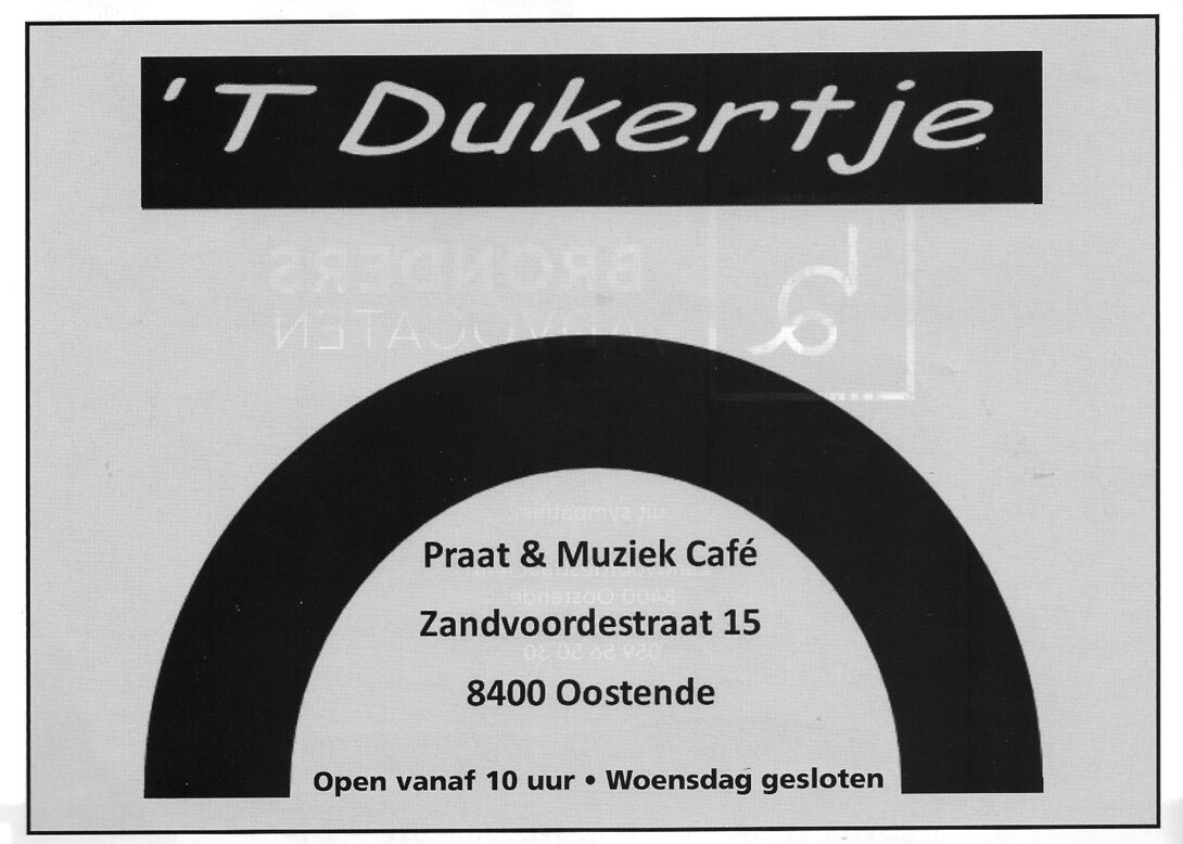 Advertentie : 't Dukertje. Praat & Muziek Café. Zandvoordestraat 15, Oostende