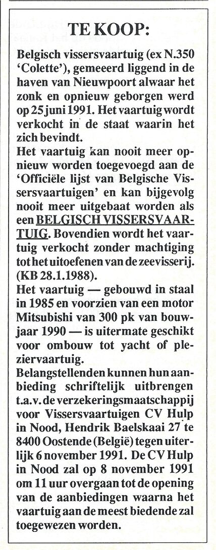 Trefwoorden N.350 COLETTE COLETTE (VISSERSVAARTUIG) SCHEPEN ; COLETTE (VISSERSVAARTUIG) ADVERTENTIES ; ZEEVISSERIJ HULP IN NOOD (VERZEKERING VISSERIJ) Plaatskenmerk VISS1991 04-10-1991 Auteurs Anoniem Bron Het Visserijblad Pagina's 40 Print