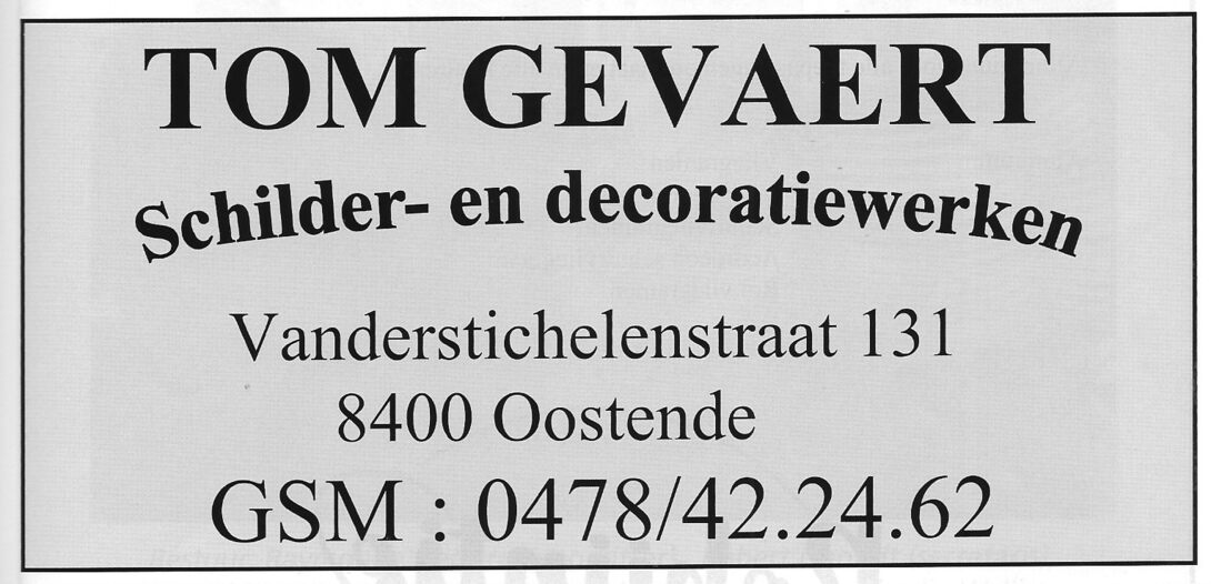 Advertentie : Tom Gevaert. Schilder- en decoratiewerken. Vanderstichelenstraat 131, Oostende