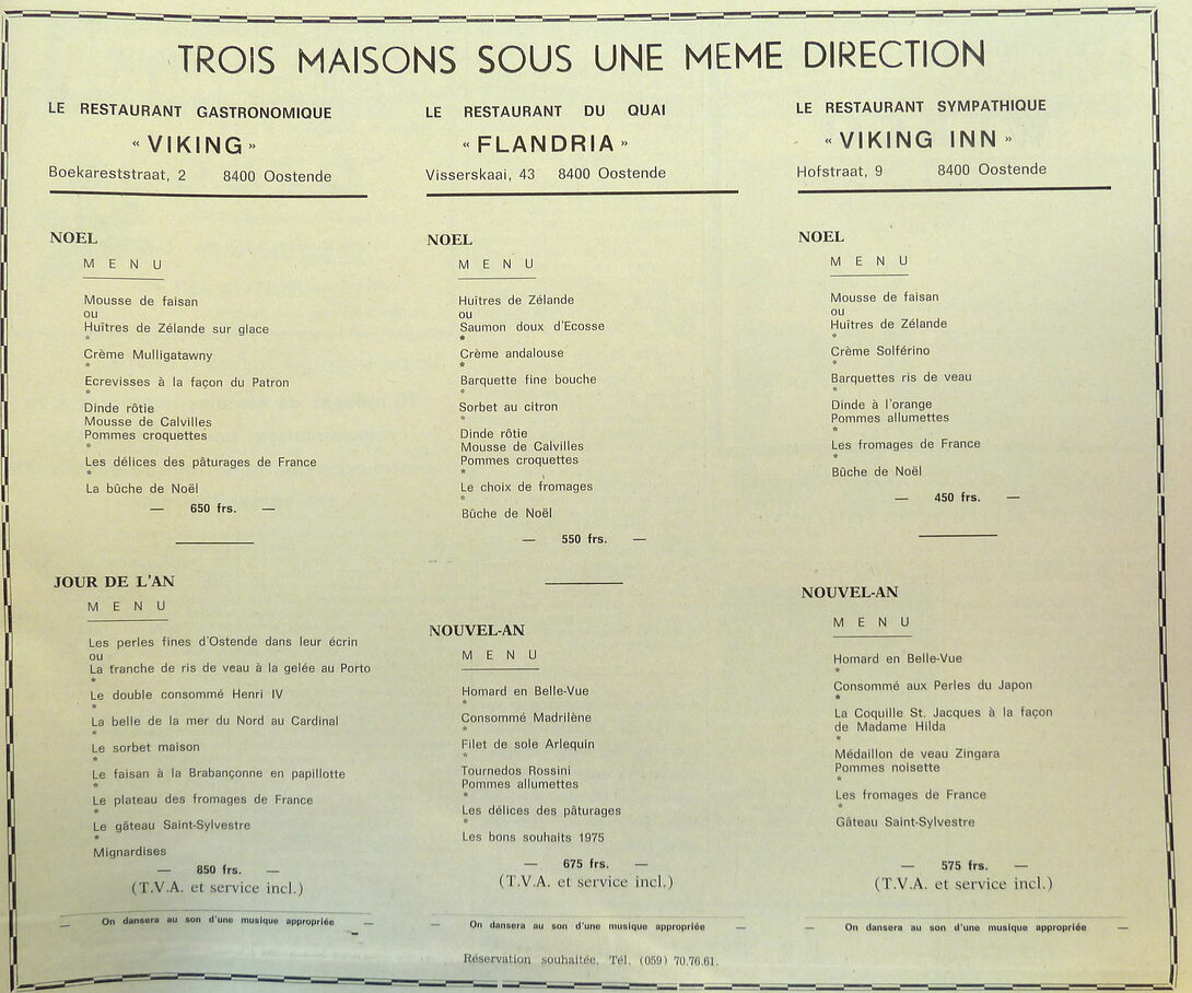 Advertentie : Trois maisons sous une même direction. Réveillon de Noël. Réveillon de Nouvel-An