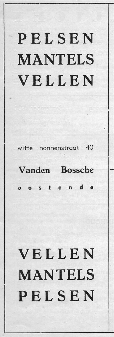 Trefwoorden ADVERTENTIES ; KLEDING VANDEN BOSSCHE (KLEDINGWINKEL) WITTENONNENSTRAAT Plaatskenmerk ARCHIEF 117.6 - VOET1936 september 1936 Auteurs Anoniem Volume 6 Nummer 5 Bron Voetlicht Pagina's 3 Print