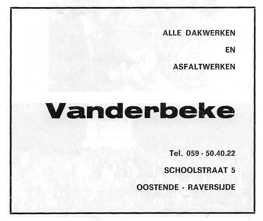 Trefwoorden ADVERTENTIES ; AANNEMERS EN BOUWBEDRIJVEN VANDERBEKE DIRK (DAKWERKEN) SCHOOLSTRAAT Inventarisnummers 2013/1916 Deelbeschrijving uit boek of document Programma : Vergit da mo 1978 Pagina 25 Print