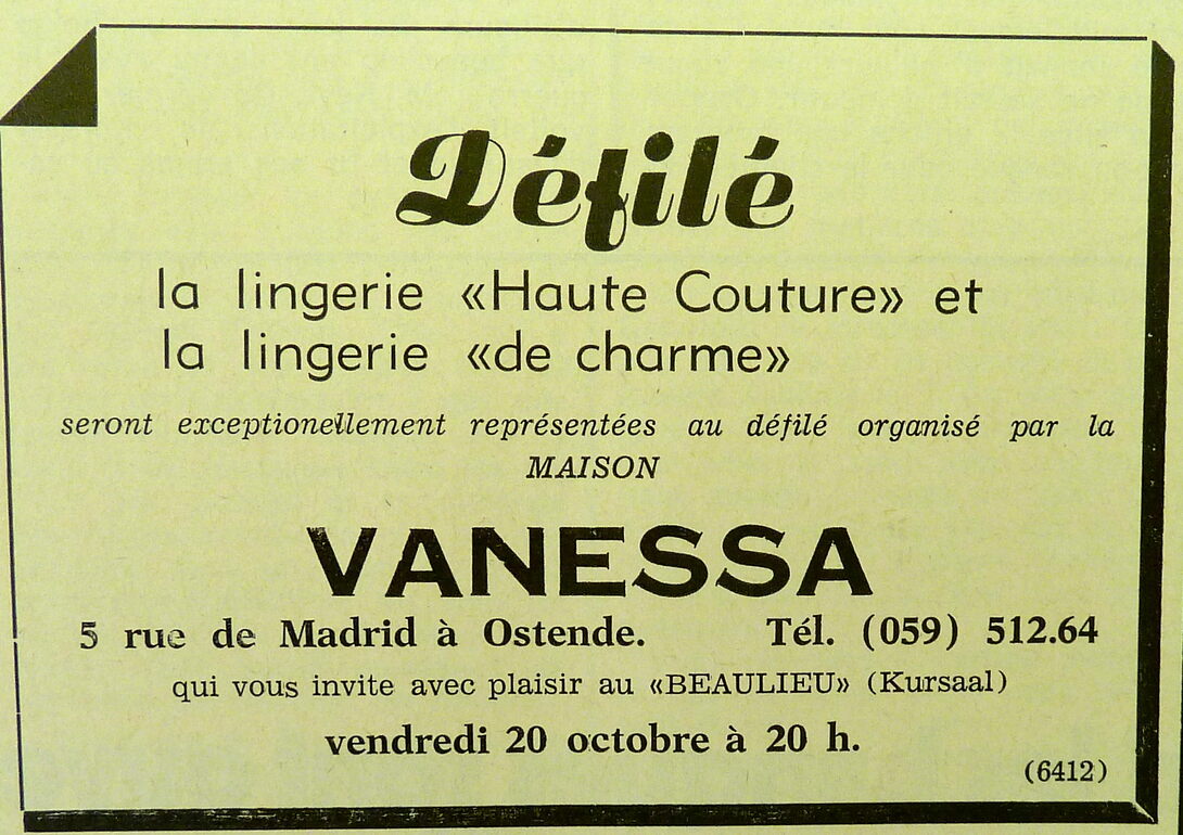 Trefwoorden ADVERTENTIES ; KLEDING VANESSA (LINGERIE) MADRIDSTRAAT HANDEL ; LINGERIE Plaatskenmerk ARCHIEF 117.8 B35 COUR1972 20-10-1972 Auteurs Anoniem Bron Le Courrier du Littoral Pagina's 4 Print