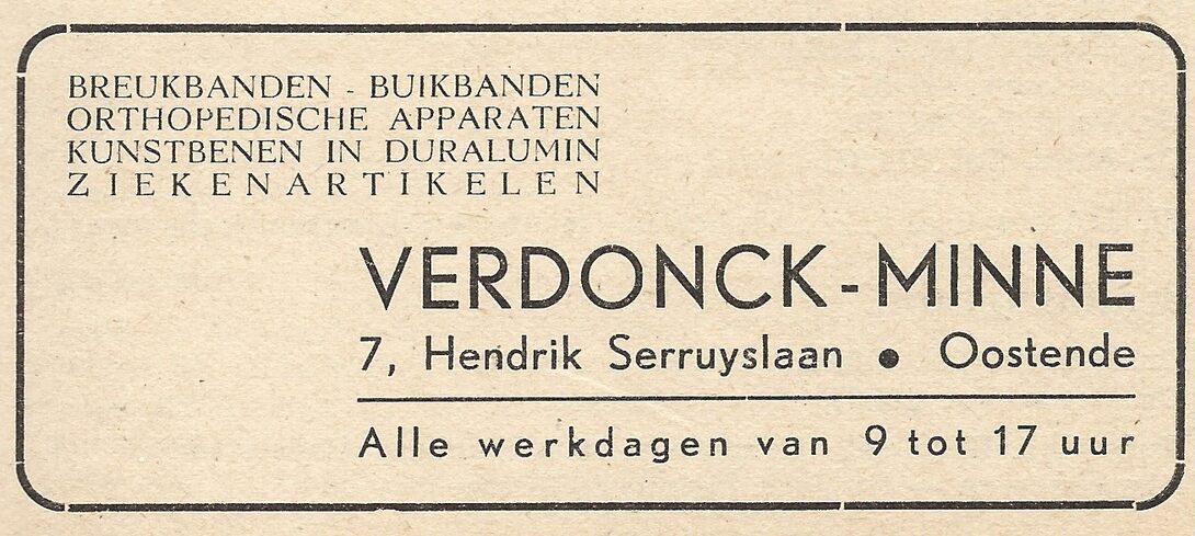 Advertentie : Verdonck-Minne. Hendrik Serruyslaaan 7, Oostende