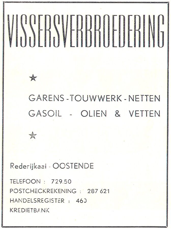 Trefwoorden VISSERSVERBROEDERING (VISSERIJBENODIGDHEDEN) ADVERTENTIES ; SCHEEPSUITRUSTINGEN REDERIJKAAI Plaatskenmerk B985 Inventarisnummers 2008/0140 Deelbeschrijving uit boek of document Een SOS van de Belgische zeevisserij : een nijverheid vecht voor haar bestaan. - (Les Monographies Economiques) Auteurs Klausing Jef Pagina 20 Print