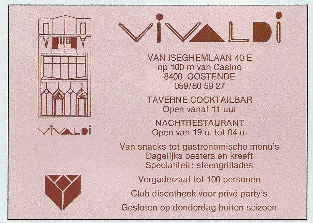 Advertentie : Vivaldi. Taverne Cocktailbar Restaurant. Van Iseghemlaan 40E, Oostende