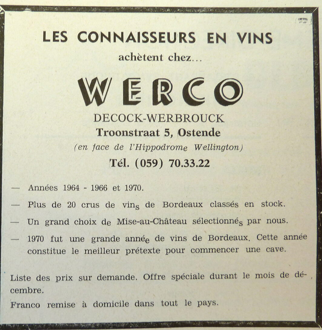 Advertentie : Wijnhandel "Werco". Troonstraat 5, Oostende