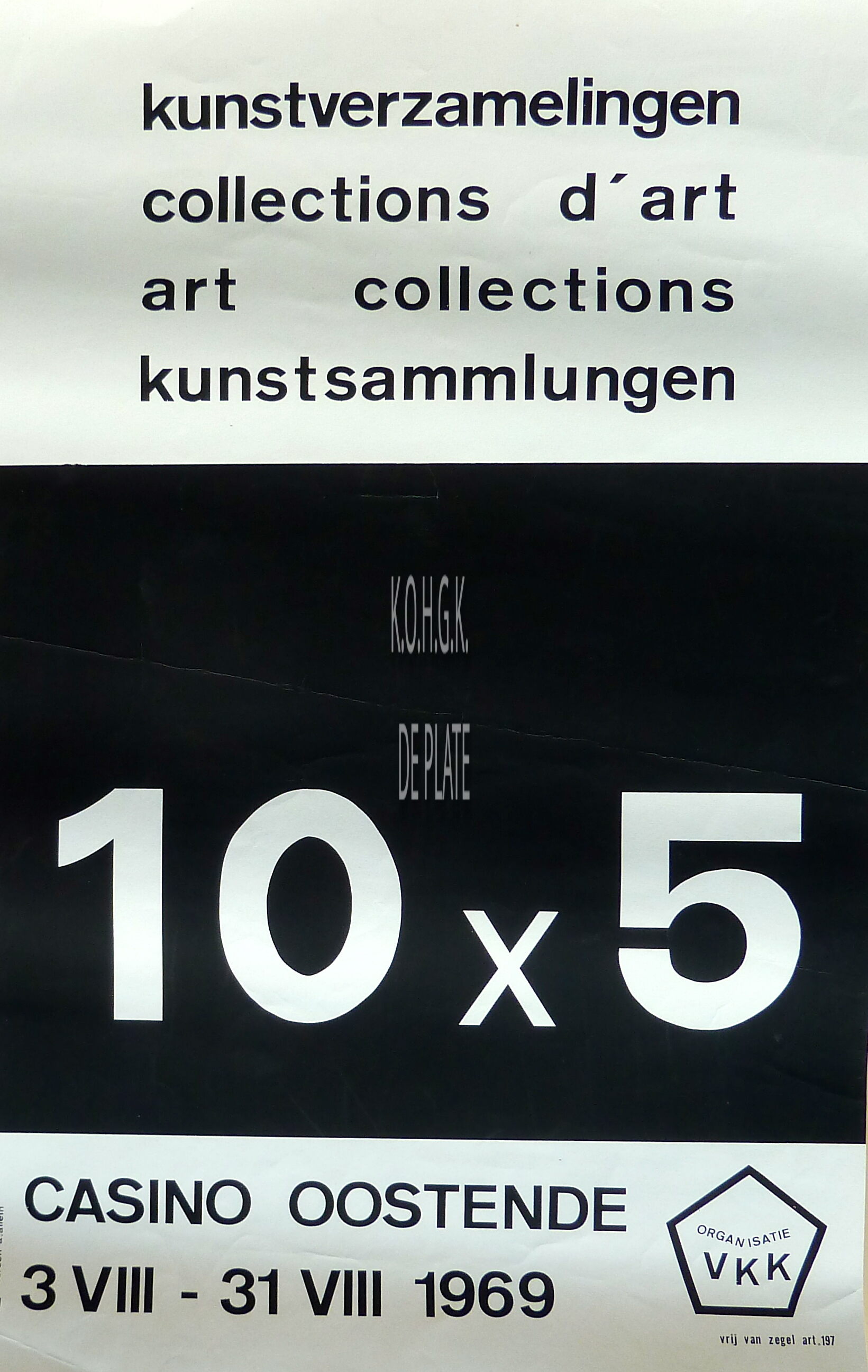 Affiche : 10 x 5. Kunstverzamelingen = Collections d'art = Art collections = Kunstsammlungen. Casino Oostende. 03/08-31/08/1969
