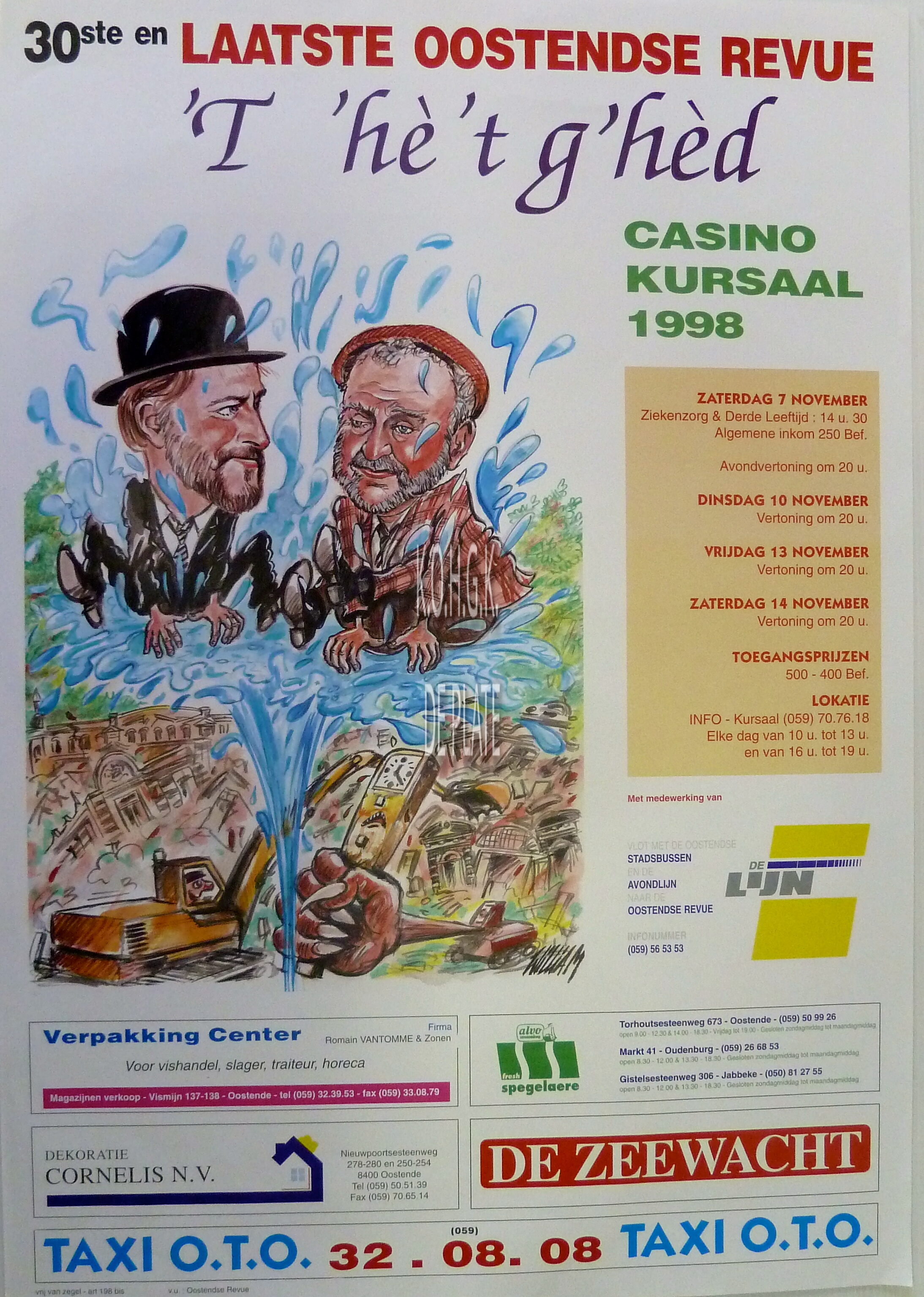 Omschrijving Formaat : 60 x 42 cm. Ontwerp : William Trefwoorden AFFICHES OOSTENDSE REVUE (NAAM) T 'HE 'T G'HED (REVUE) LIEVENS WILLIAM (CARTOONIST OPVOEDER) CASINO-KURSAAL ; EVENEMENTEN Plaatskenmerk ZOLDER 301 LKA/16/797/34/1998-11 Inventarisnummers 2014/6364 11/ 1998 Uitgever Oostendse Revue Herkomst NIEUWENHUYSE GILBERT Collectie Variéte Oostendse Revue Print