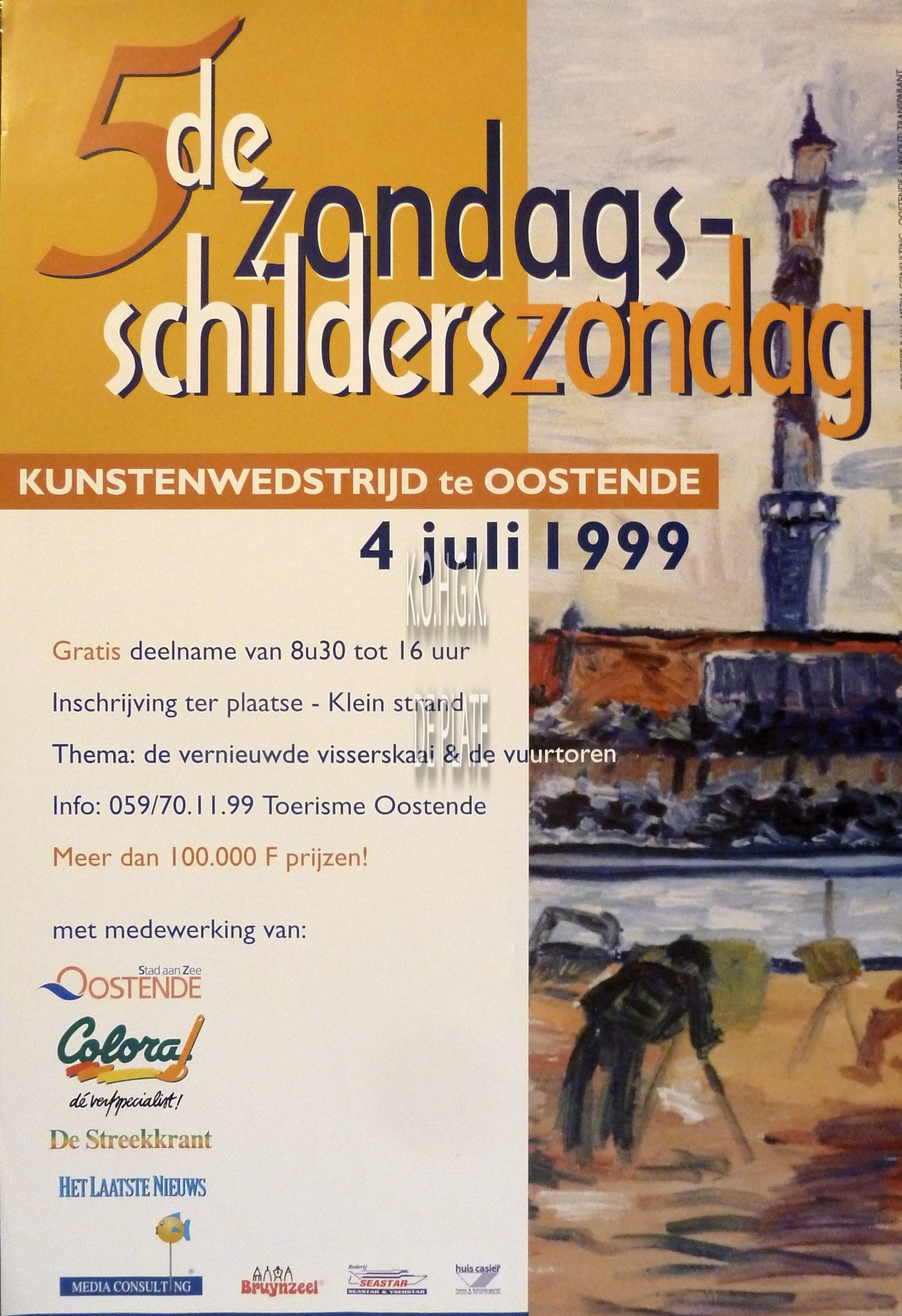 Affiche : 5de zondagsschilderszondag. Kunstwedstrijd te Oostende. 4 juli 1999