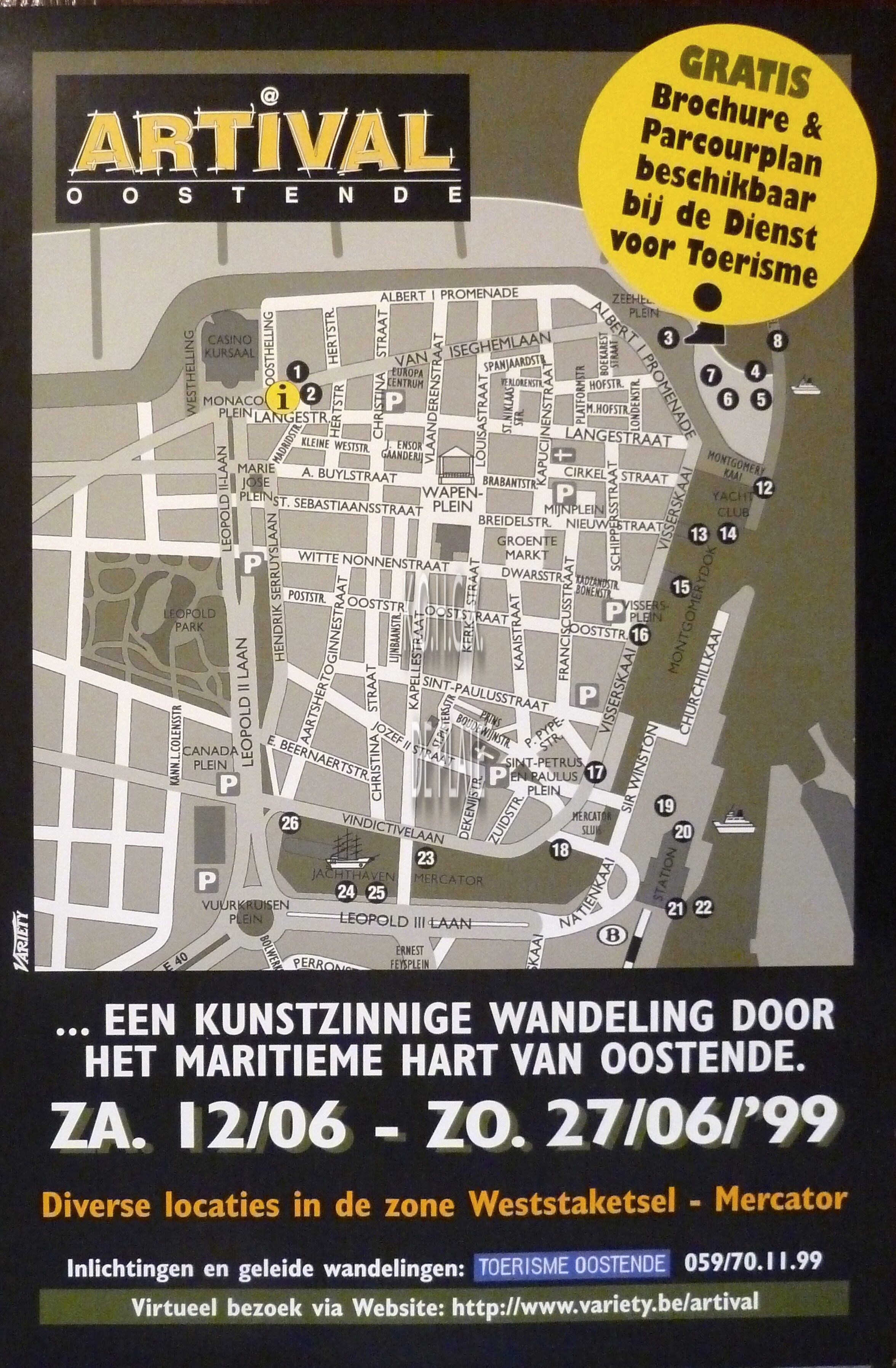 Omschrijving Formaat : 60 x 40 cm. - Diverse locaties in de zone Weststaketsel - Marcator Trefwoorden AFFICHES STADSWANDELINGEN KUNST ; ALGEMEEN ARTIVAL (KUNST WANDELROUTE) Plaatskenmerk ZOLDER 301 LKA/18/700/01/1999-06 Inventarisnummers 2019/1019 06/ 1999 Collectie Kunst Algemeen Print