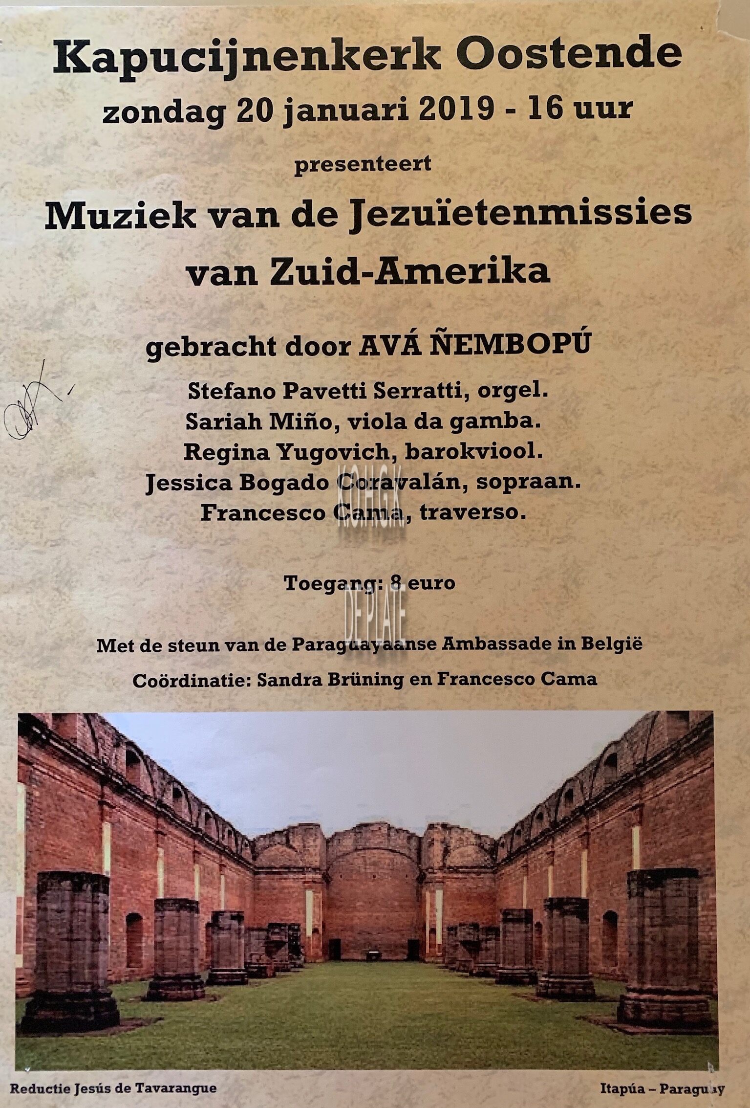 Affiche : Avá Ñembopú. Muziek van de Jezuïetenmissies van Zuid-Amerika. Kapucijnenkerk. 20/01/2019