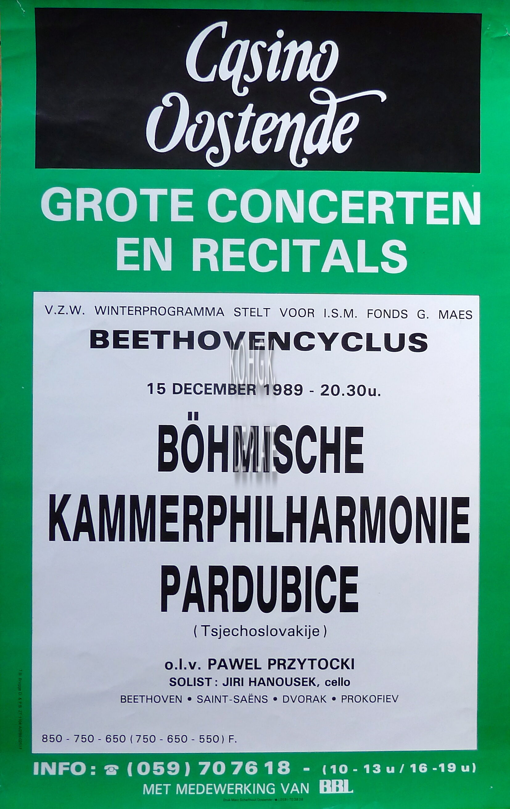 Formaat : 61 x 38 cm. - o.l.v Pawel Przytocki. Solist : Jiri Hanousek, cello. v.z.w Winterprogramma stelt voor i.s.m Fonds Georges Maes. Deel van de Beethovencyclus