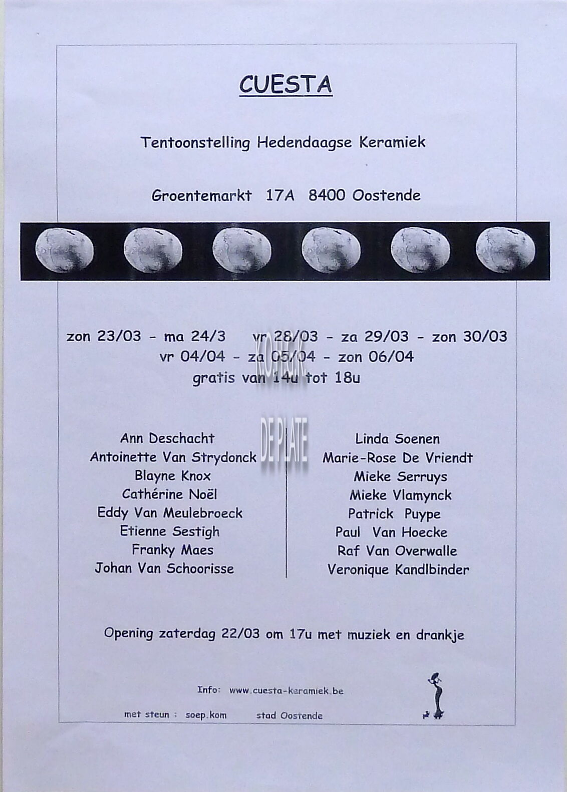 Affiche : Cuesta. Tentoonstelling Hedendaagse Keramiek. Groentemarkt 17A 8400 Oostende.