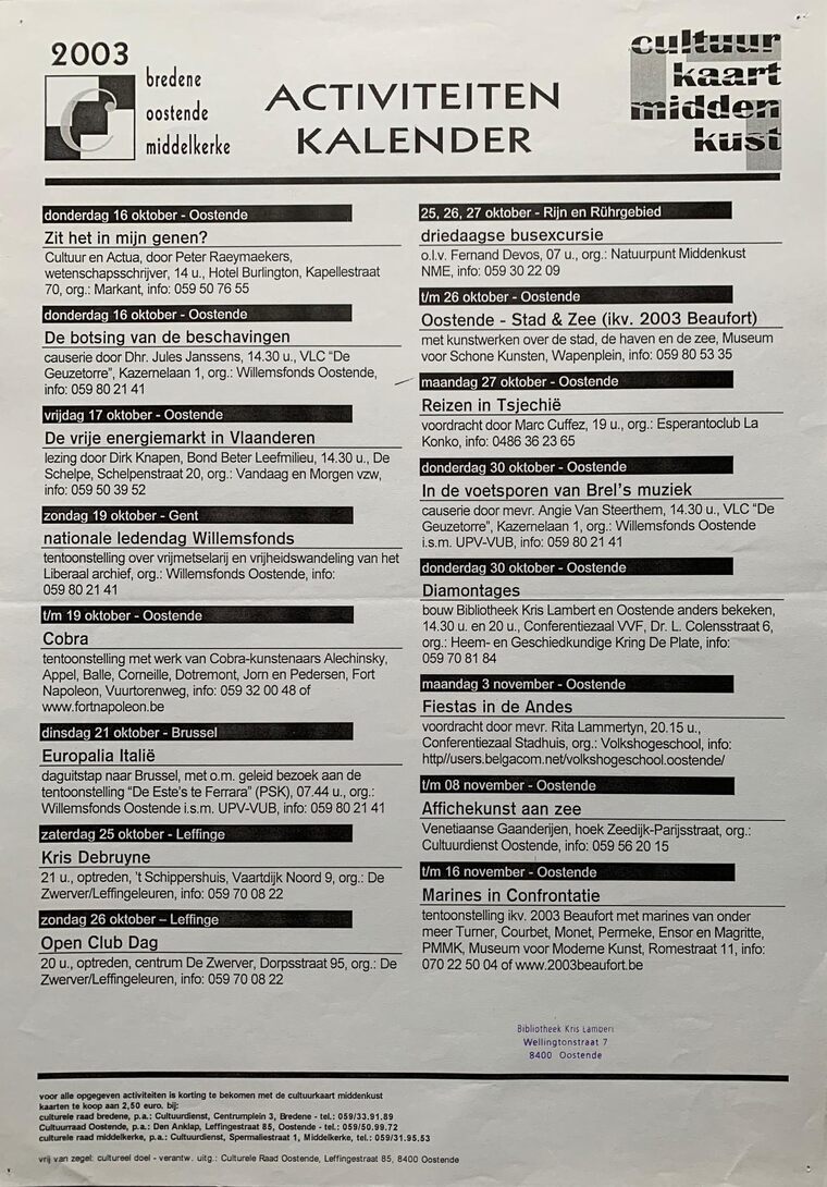Formaat : 42 x 30 cm . - Activiteitenkalender Bredene-Oostende-Middelkerke oktober-november