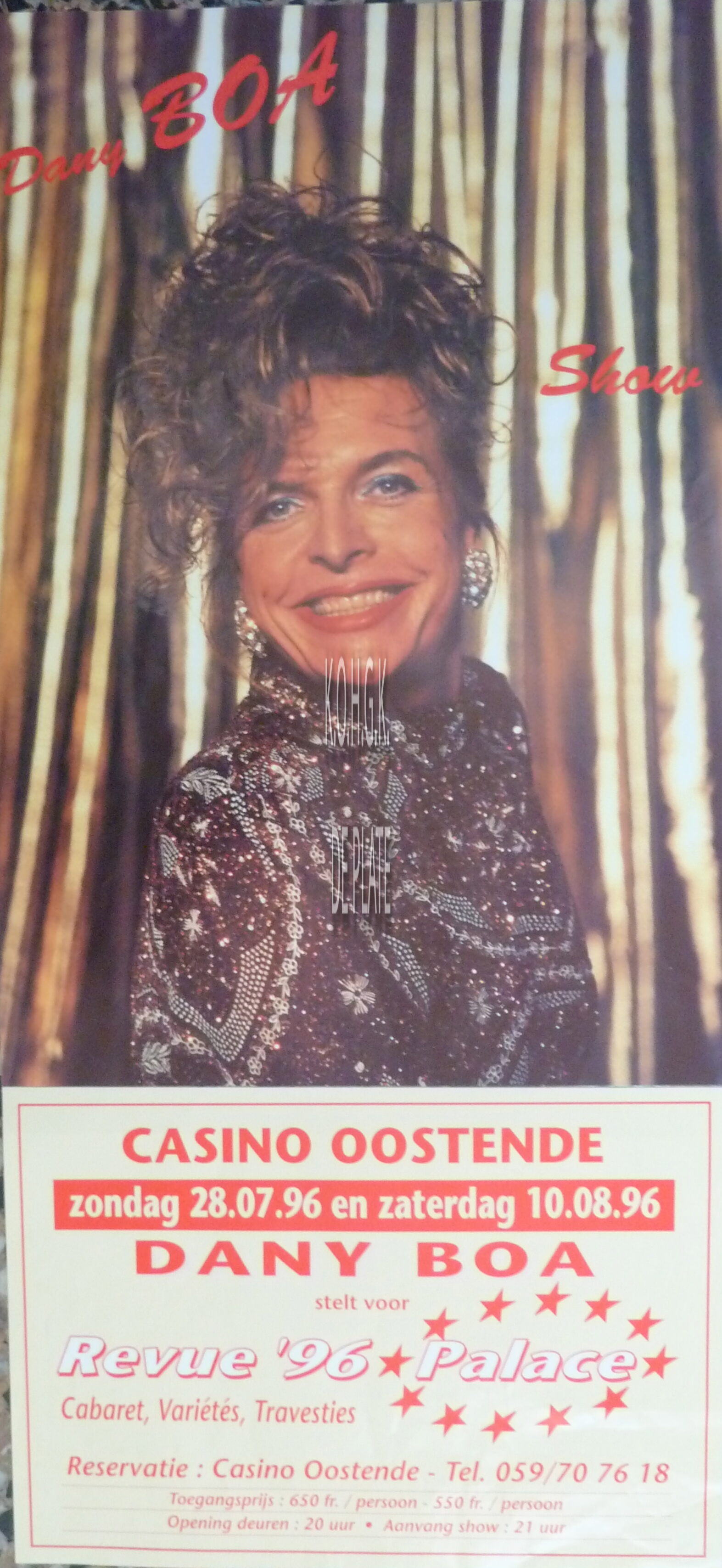 Omschrijving Formaat : 92 x 43 cm. - Cabaret, Variétés, Travesties Trefwoorden AFFICHES CASINO-KURSAAL ; EVENEMENTEN VARIETE CABARET DANY BOA (ARTIEST) Plaatskenmerk MUSEUMDEPOT 117.5/LKD/31/797/11/1006 Inventarisnummers 2017/2668 1996 Herkomst Michel Bottu Collectie Variété Casino-Kursaal Print