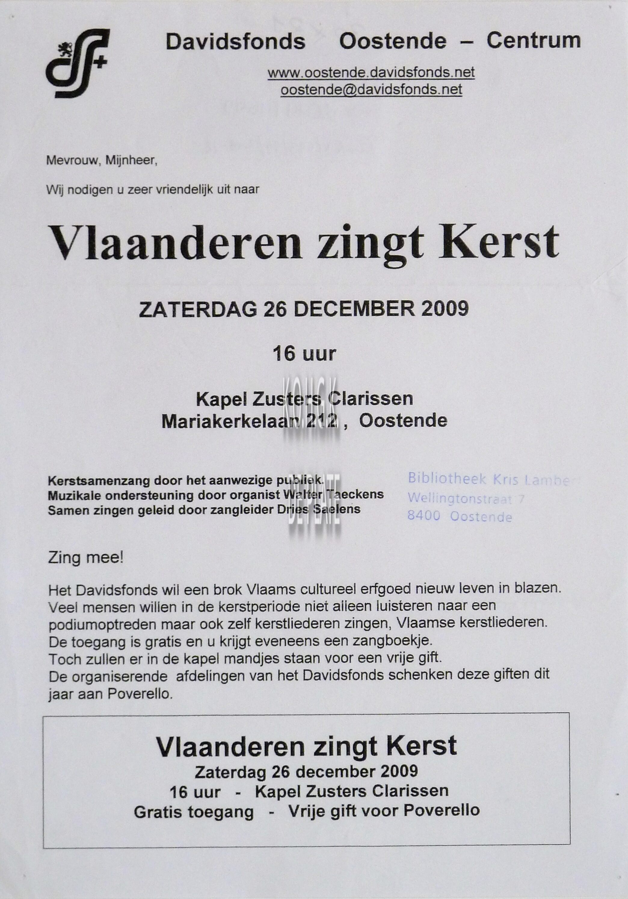 Omschrijving Formaat : 30 x 21 cm. Trefwoorden DAVIDSFONDS (SOCIO-CULTURELE VERENIGING) AFFICHES MUZIEK ; CONCERTEN KERSTMIS ZONNELIED (CLARISSENKLOOSTER) Plaatskenmerk ZOLDER 301 LKA/04/493/34/2009-12 Inventarisnummers 2014/4649 26/ 12/ 2009 Herkomst BIBLIOTHEEK KRIS LAMBERT Collectie Socio- Culturele Verenigingen Davidsfonds Print