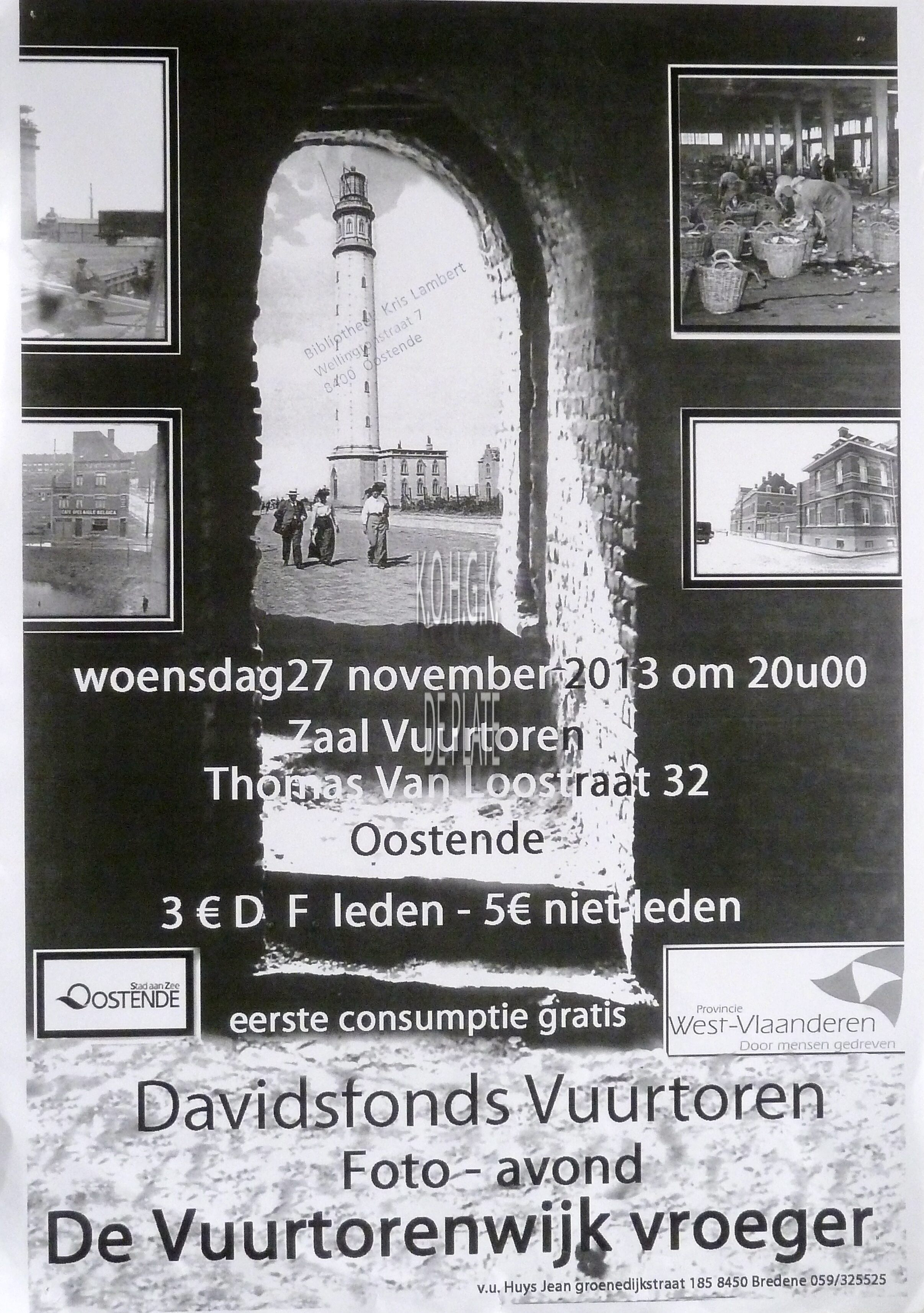 Affiche : Davidsfonds Vuurtoren. Foto-avond : De Vuurtorenwijk vroeger. Zaal Vuurtoren. 27/11/2013